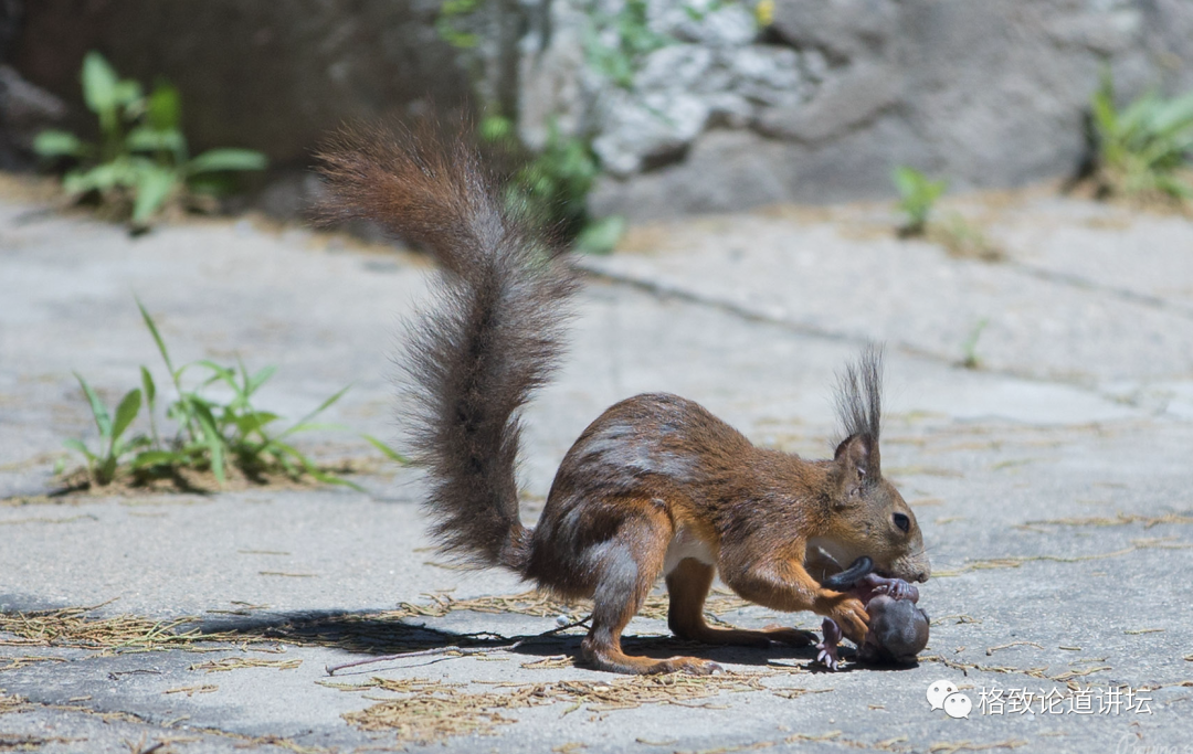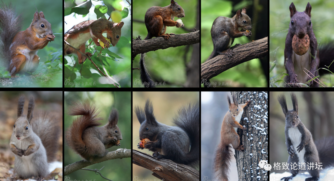 第一个故事的主角是欧亚红松鼠。北京的很多公园里都能看见它们的身影,从亚洲东部到欧洲都有分布。在亚洲,它的体色多为黑色或棕色;在欧洲,体色以红色居多。