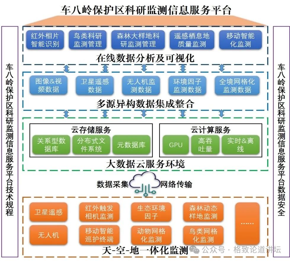 除了动物之外,我们还可以监测环境和植物。我们建了样地,进行树木的长期监测,还有水文的、土壤的、气象的以及林冠层的监测。这些都可以在云服务平台上进行分析和智能展示。