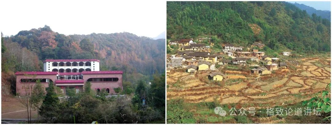 车八岭位于广东最北的韶关市,在来之前我就想,广东是改革开放的前驱,发展得应该非常好。但是来到保护区后,我发现情况并非如此。我被安排住在博物馆的裙楼里,而且是两个同事住一间房。保护区离县城有45公里,每一周有一部小班车来回一次。我是每三四个月去才一次县城,买一点生活用品。初到此地,当地的语言也听不懂。右边的这张照片就是当时车八岭保护区核心区内村庄的面貌,可以很明显地看出并不发达。
