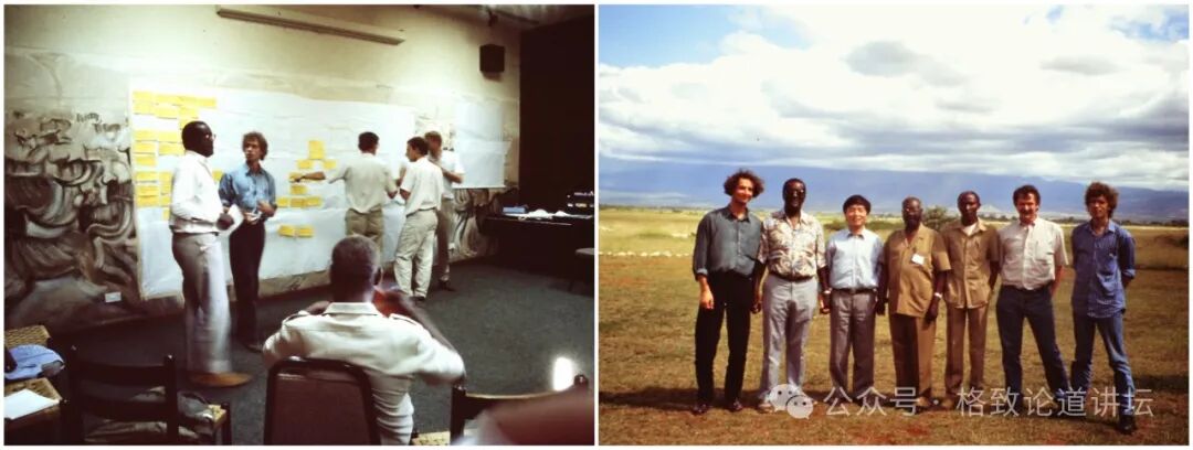 肯尼亚的安博塞利生物圈保护研究是我进入教科文组织后做的第一个项目。照片上的非洲专家里有一位是肯尼亚第一个国家公园的主任,另一位是肯尼亚大学生态学的奥加尼教授。他们现在都已经不在世了,我有幸和他们在一起工作了几年。