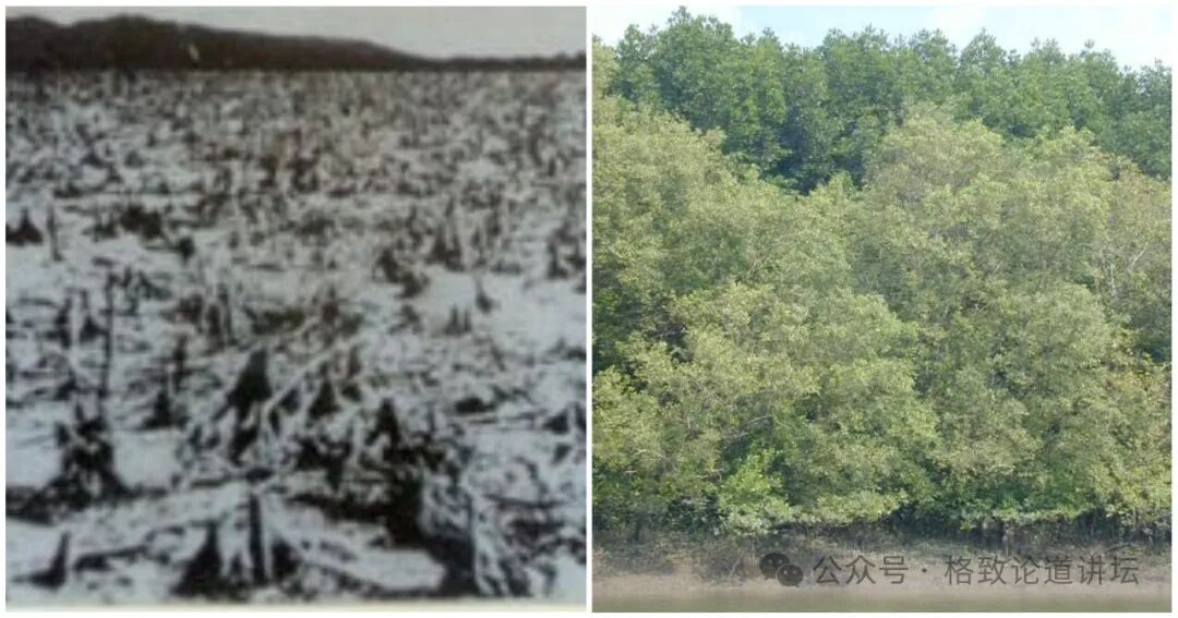 我们还要加强生态修复与重建。这个案例是越南胡志明市外一个7万多平方公顷的红树林,但在越南战争的时候被美军用化学武器全部毁掉。经过几十年不断地栽培和自然的恢复的过程,现在又成为一个生机盎然的系统。这是联合国系统里首次将一个曾经完全被摧毁的生态系统纳入到世界生物圈保护区网络。