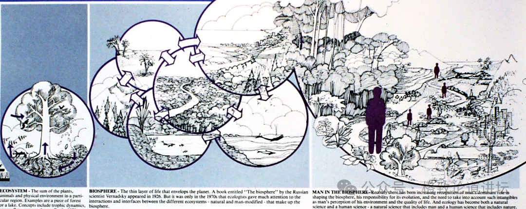 在人与生物圈的科学计划,我们从生态系统、生物圈再到1968年大会强调的人在这个生物圈当中具有决定性的中心的作用,这是一个科学概念上的进展。