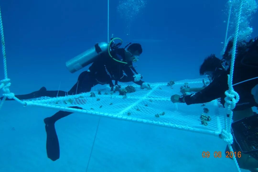 我们种了这么多珊瑚,研究了很多,其实是积累了很多很多经验教训很才做成的。我记得我们在三亚,第一次做的比较好的时候,半年后去检查珊瑚长得怎么样,一看完了,旁边建了一个新码头,把我们原来的苗圃全部覆盖了,成果都没有了。