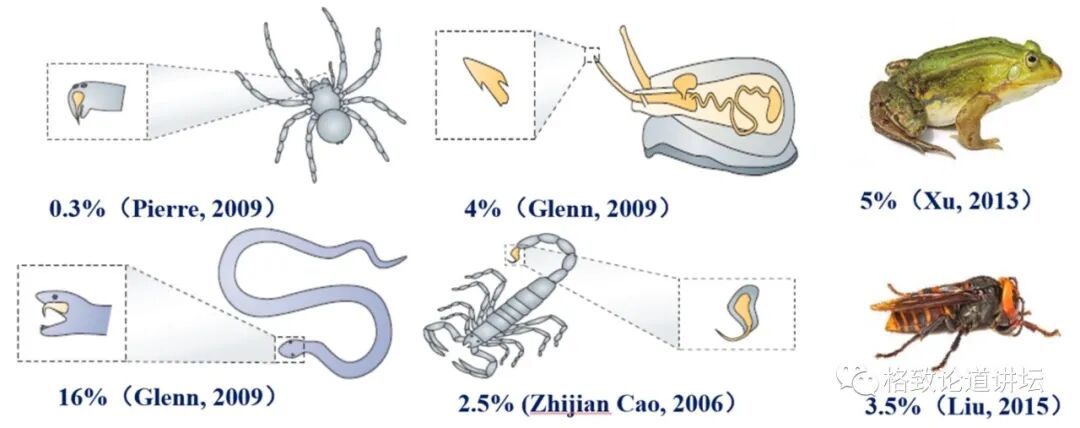 以研究最为深入的蛇毒为例,全球有超过760种毒蛇,它们大约含有6万多种活性多肽,但其中人类已知的仅有约1000种。此外,人类已经识别到的蜘蛛毒素也不足总量的1%。