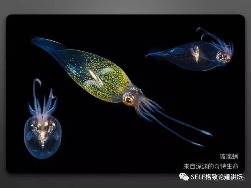 你拍摄出来的照片永远无法如实还原亲眼看到的美丽。我们也可能看到很多来自深海的很特别的生物,比如玻璃乌贼。