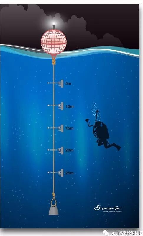 我们在水面上有一个浮球,浮球上拴着一根长绳,每5米有一个大的探照灯,这些大的探照灯会把周围的浮游生物聚拢开来。