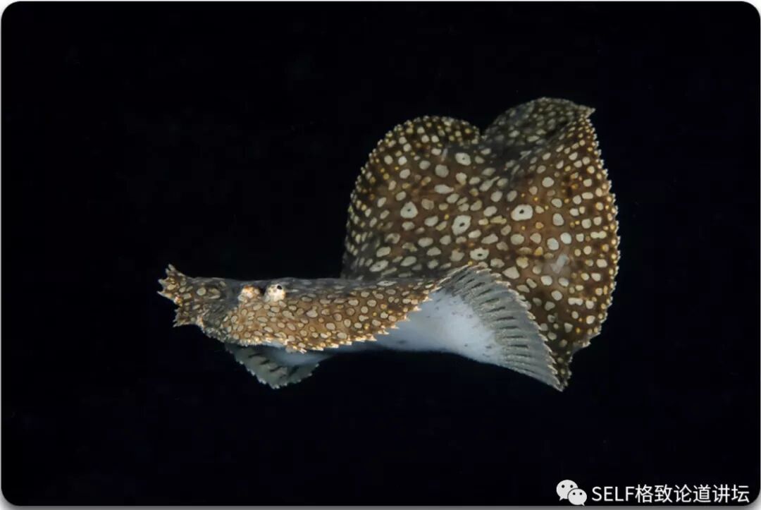 当然也有例外,着底失败竟然没有被吃掉,最后长大了。就如下图这个比目鱼,像地毯一样到处飘。