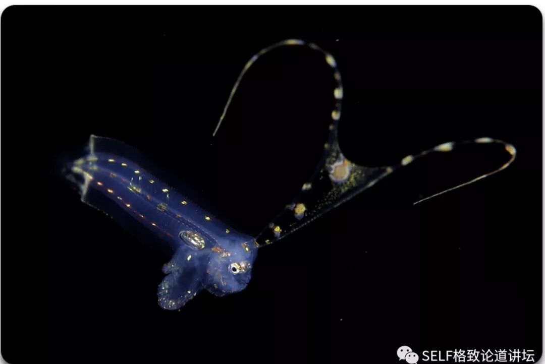 我们看到的这些很漂亮、像蝴蝶一样的贝壳,它的壳体可能只有1毫米大,肉眼几乎看不清楚,但是它的肉体非常华丽。