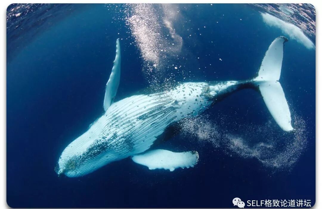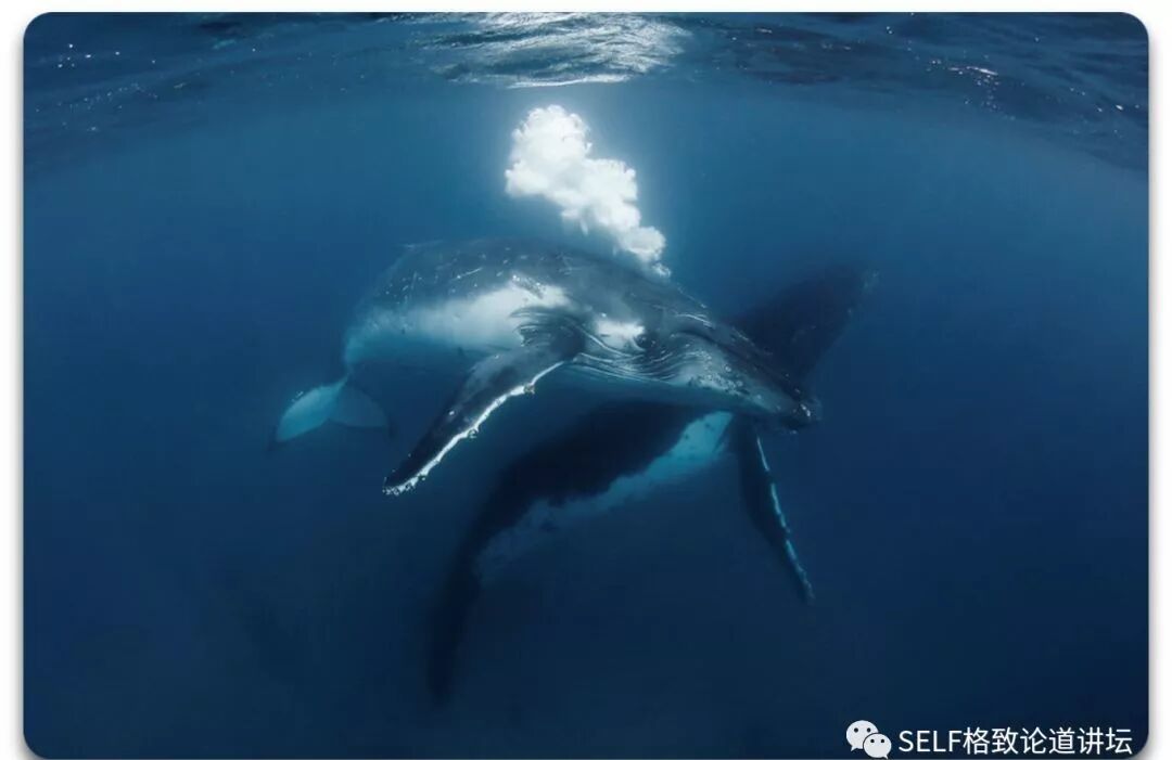 上图是两只成年的公鲸,它们其实并不是在嬉戏,它们是情敌,喷出的气泡是一只公鲸对另外一只公鲸的警告。