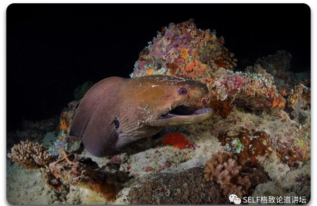 首先,我们周围潜伏着很多捕食者,比如海蛇。可能你的灯放下去以后会有一大群鱼把它覆盖了,接下来可能会发现有更大的鱼群过来捕食,再接下来可能会有更巨大的捕食者、比你还大的蝠鲼跑过来捣乱,这个时候拍摄就终结了。