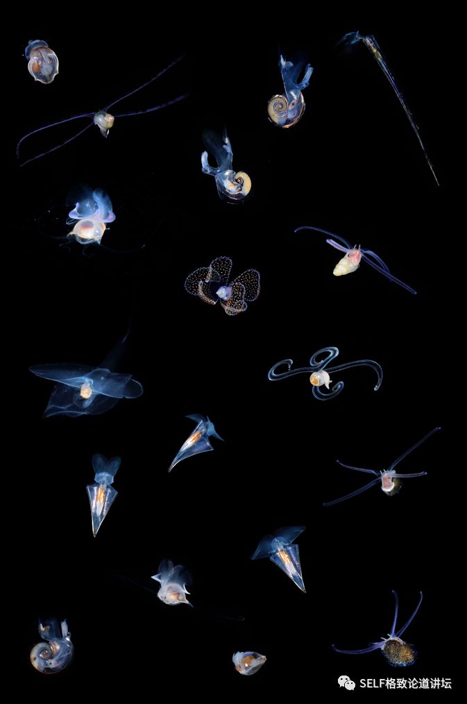 浮游生物的世界像庞大的王国,就像焰火盛放在黑夜之中,这些浮游生物可能是大家很熟悉的生物,但你们可能并不了解它们小时候长什么样。我们平时看到的海葵、水母、珊瑚,都会经历浮游生物阶段,在这片黑夜中都像绽放的花朵一样。