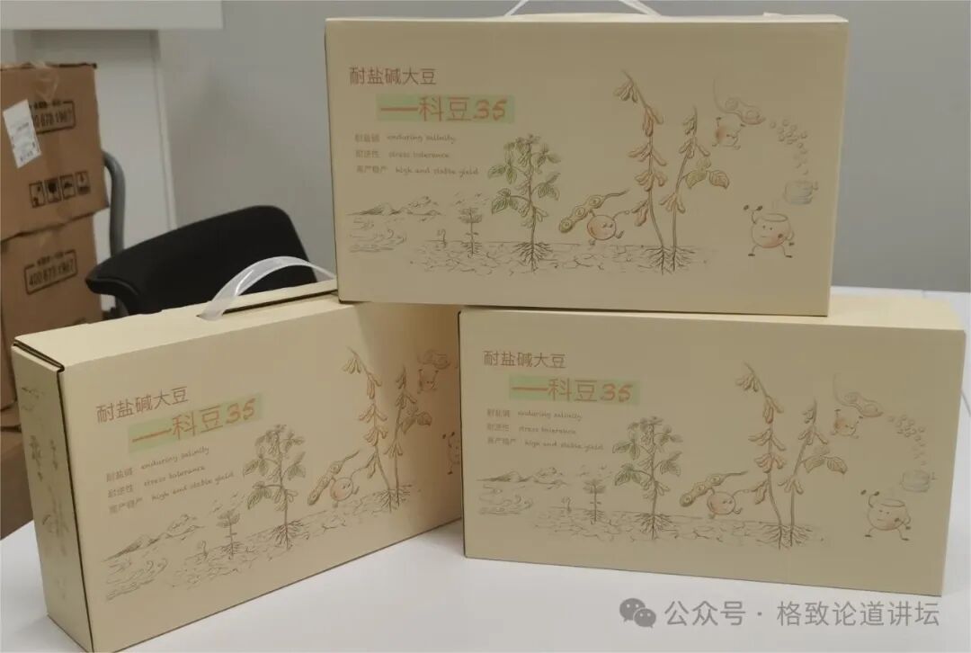 后来我们自己制作了一些小礼盒送给各位朋友喝,包装也都是我们自己设计的。如果大家去我们遗传发育所,我请大家尝一尝我们的豆浆,真的很好喝,打出来有点像牛奶。