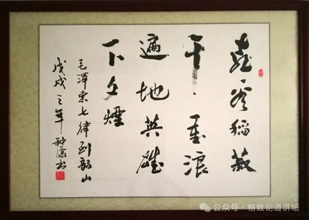 在这十几年间,我们得到了很多来自老师、朋友以及同学的帮助和支持。这是种康老师给我写的一幅字,内容是毛主席《七律·到韶山》其中的两句“喜看稻菽千重浪,遍地英雄下夕烟”。