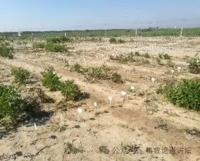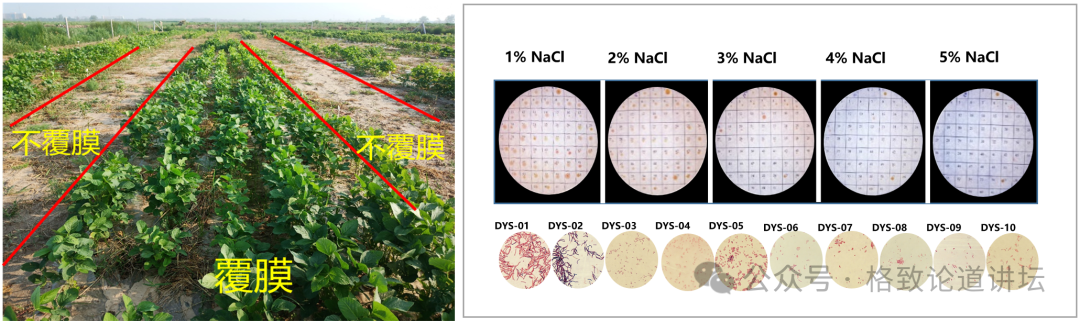 后来我们就想了一些其他的办法,比如覆膜。覆膜之后就能够很好地保持水分,保证它的生长,也能抗盐碱。我们还筛选了当地一些菌肥微生物,加了一些生物的微生物菌肥来帮助它抗盐碱。