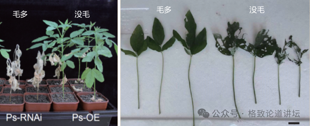 但是在有虫的环境下,没毛的基本都被咬得七零八落全是洞,但是毛多的基本不受影响。所以说,我们在育种中一定要考虑到这种平衡。即使是毛这么一个非常小的性状,我们都需要让它保持在一个比较恰当的一个水平。