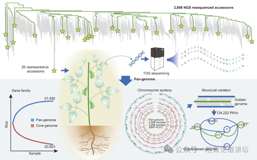 所以就需要更多的基因组,要在人群里再选一些具有代表性的个体进行测序,之后再通过比较得到哪些基因是我们这些人都有的、哪些是偶尔几个人有的、哪些是某一个人特别有的,这样就更清晰了。这也就是后来提出的“泛基因组”的概念。在大豆里,我们成功地实现了泛基因组。