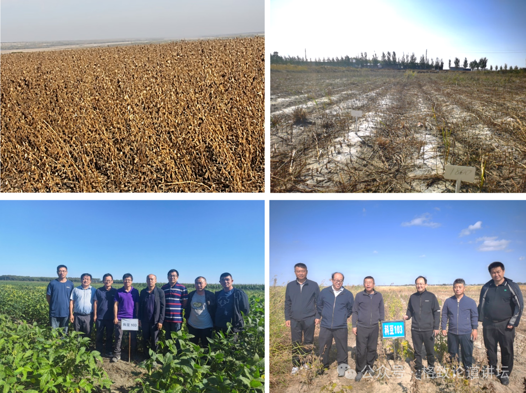 2023年还有个意外的发现。刚才说我们培育的科豆103是一个高产高油的品种,这也是品种审定时候的特点。但是我们发现它耐盐碱的能力也非常强,甚至强得很极端。右上图是黑龙江的肇源县,那里基本上是白花花的碱地,pH都在9以上了。在这种状态下,科豆103还能够生存下来,所以它耐碱性非常好。