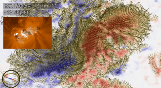 ▲ 太阳活动区磁场的相互作用和磁能的释放