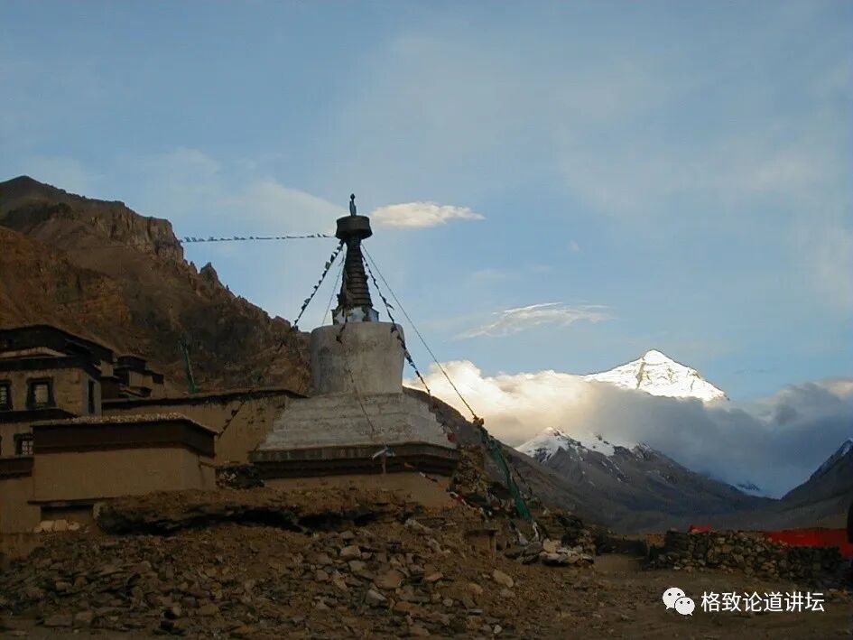 这是黎明中的珠峰,是我在珠穆朗玛峰脚下拍摄的。另外画面中间有一个绒布寺,这是西藏很早的一个寺院。我们看到了地球的最高峰,也看到了人类文明的痕迹。