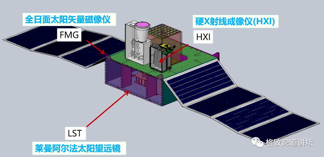 这就是我国的先进天基太阳天文台,载荷有全日面太阳矢量磁像仪。在太阳矢量磁场测量上,中国曾经在20世纪90年代领先世界,那时我国地面的太阳磁场望远镜为太阳物理做出了很重要的贡献。但是空间上我们还没有上去过,所以在这个先进天基天文台将会开展空间的太阳矢量磁场测量。还有在人类历史上第一次用氢的共振谱线,也就是莱曼阿尔法谱线来进行光谱成像观测和日冕仪的观测。另外还有硬X射线成像望远镜。这台天基太阳望远镜已经准备就绪,会在2022年的春季择时发射。