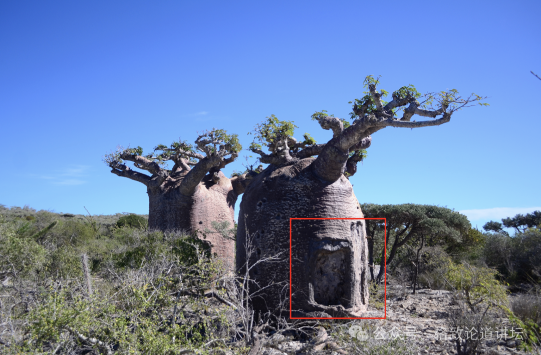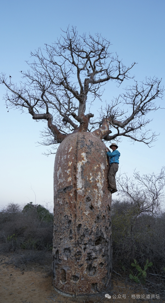 我们中国的科学家们也对猴面包树进行了研究和迁地保护的工作,采集了很多猴面包树种子种植在植物园里。在这里,我不得不提到它跟另外一种动物的共存关系。