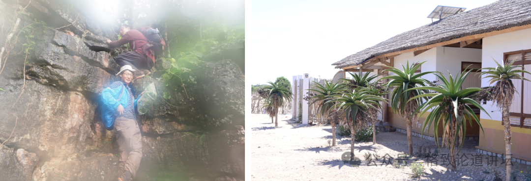 当时一个大石头就把我的小腿给砸烂了,鲜血直流。我非常担心,因为非洲的卫生条件比较差,很容易感染。回到我们住的民宿以后,刚好院子里有非常巨大的树状芦荟。向导很快就从树上折了一片叶子,用芦荟的枝叶帮我抹了伤口,非常幸运地没有发炎,但是现在我的小腿上还是有一个很大的伤疤。