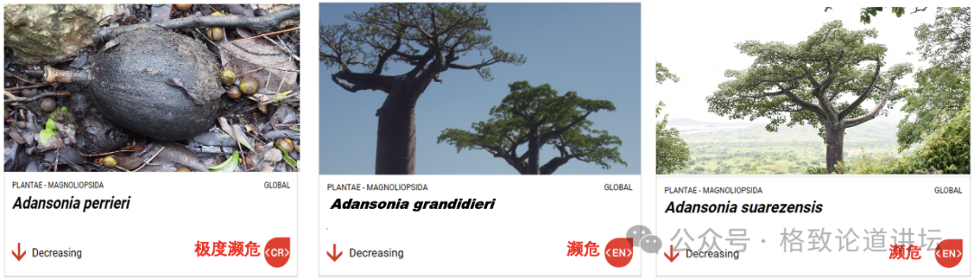 经过长期的考察,我们发现所有猴面包树的种群都在下降,野外很难找到猴面包树的小苗,这同国际自然保护联盟发布的物种红色名录的信息非常一致。