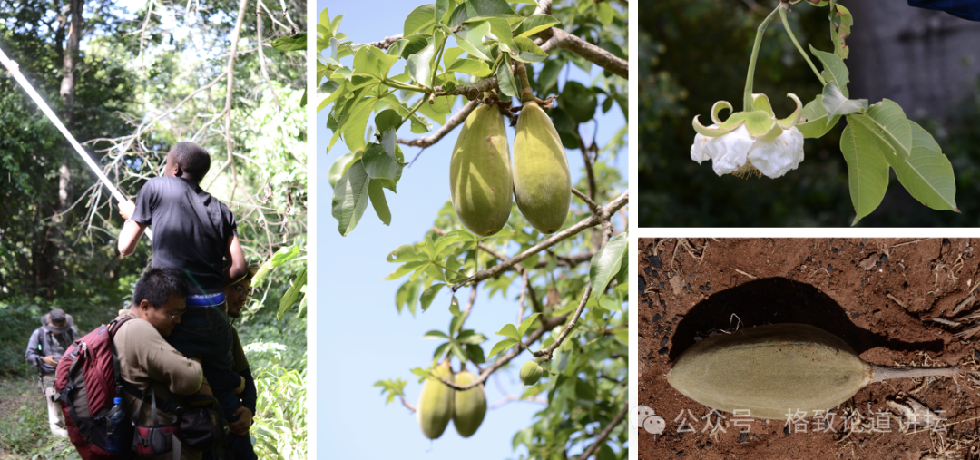 我在植物园里播种的时候发现,猴面包树种子的种皮是非常坚硬的,如果不经过处理和催芽,它的发芽率只有20%不到。我从象鸟的故事里面得到了一些启发,就用开水去煮或者是泡它,让它的种皮软化,发现它的发芽率能达到90%以上!这就让我们得到了非常多的猴面包树的小苗。