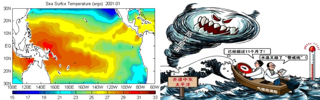 此外,暖池也是厄尔尼诺的发源地。大家对厄尔尼诺及其所造成的影响可能有所耳闻,比如,1998年的长江特大洪水就是因为厄尔尼诺;2008年初,我国南方的冰冻雨雪灾害也是源于厄尔尼诺。