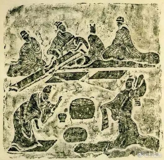 经历了历史发展,古筝不但在形制上有了变化,演奏方式也发生了很多变化。这是出土于四川成都的东汉画像砖,展示了当时歌舞宴乐的画面,左上角有一位乐手正在演奏古筝。当时古筝的演奏方式除了独奏之外,还有乐队和弹唱。