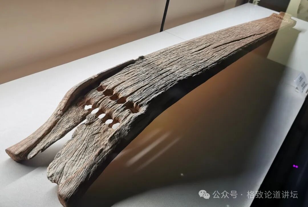 这个是1979年在江西出土的东周13弦古筝,琴弦的数量逐步地由12、13弦增加到了明清时期的15弦,民国的时候又增加到了16弦。建国之后,确立了这种21弦、钢丝内核、外面缠绕尼龙的现代古筝。