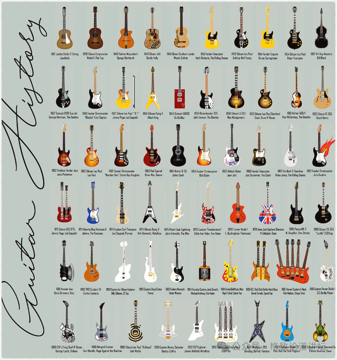 另外一个,吉他。这个就厉害了,它的存在类似于预制菜里面的添加剂,它在流行音乐当中的地位非常重要。在乐队当中有电吉他,平常有木吉他弹唱,还会有古典吉他纯演奏,我们所有人可能都或多或少听过吉他弹唱,看过吉他演奏。于是,我们就选择了吉他这个乐器作为横向比较的对象。