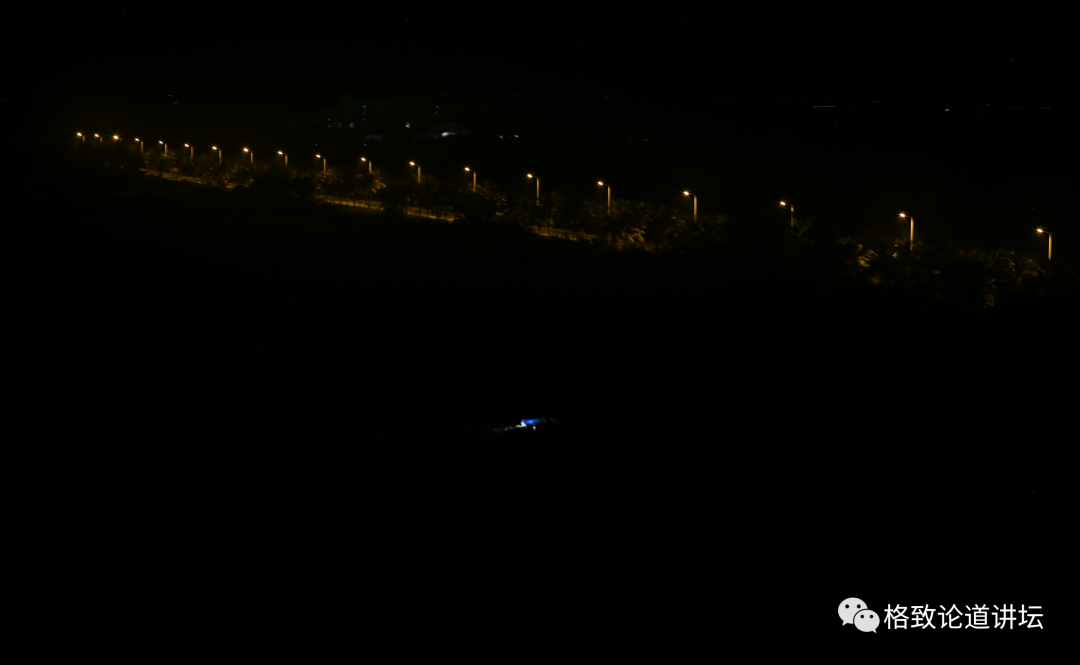 照片中的马路其实就是我们每天晚上散步的地方,那盏蓝色的灯是农民养鹅和鸭子留下的一盏灯,我觉得它代表着我们心中的一种盈盈的希望。那天晚上留了一首不算太严格的诗,来表达我们心中的祝福: