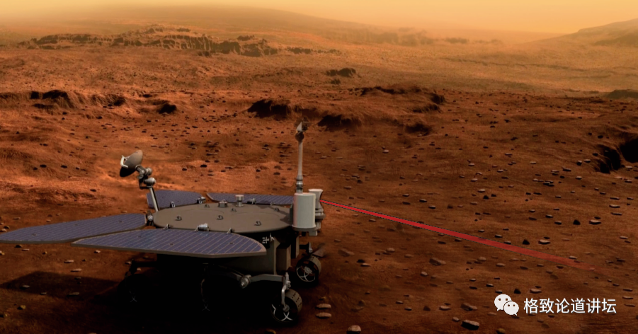 这是我们的火星车工作的一个想象图。它最开始被设计为3天走7米,但由于能源比较充足,通信条件也比较好,实际的情况是一天走了20米。目前大概走了超过1000米,已经运行了100天。