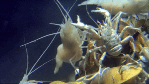 还有铠甲虾、埃尔文虾,它们位于这里的食物链最上层,可以捕食其他的冷泉生物。