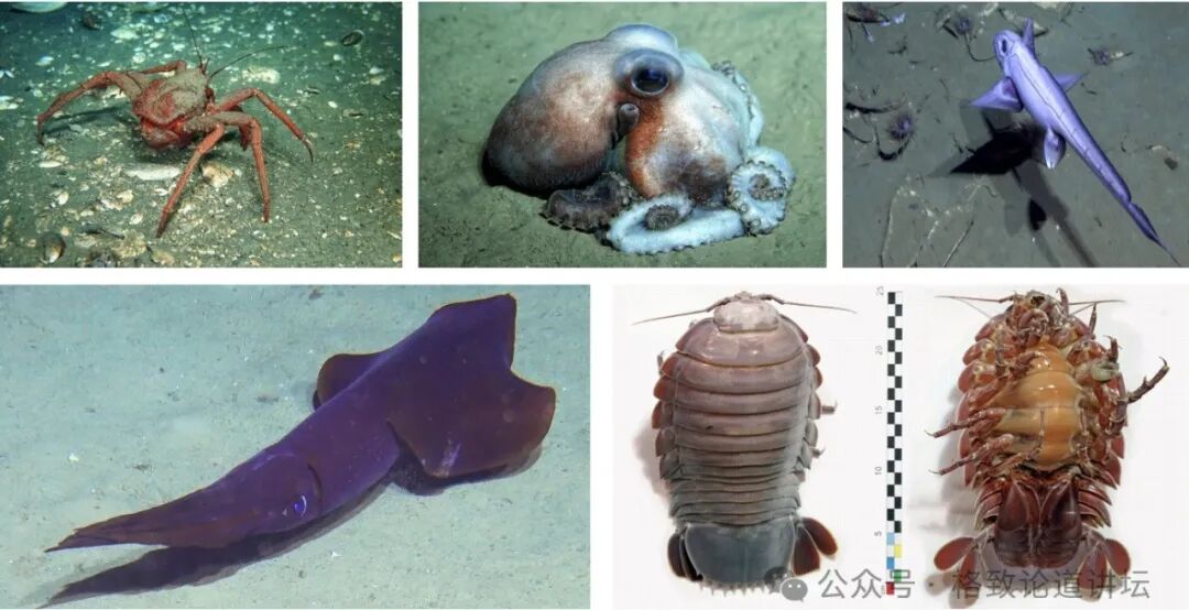 除了这些特有的生物,在这个生态区里面还有各种外来的“流浪者”。它们不是这个生态系统特有的物种,但是看到深海“沙漠绿洲”里很丰富的物质后,就在这儿定居下来了。