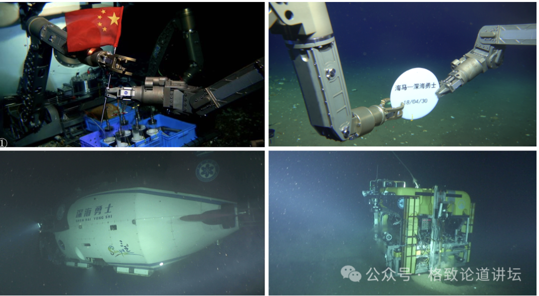 我们还和载人潜水器在深海里面联合科考作业,两台深潜器近距离接触,发挥各自不同的优势来探查海底。