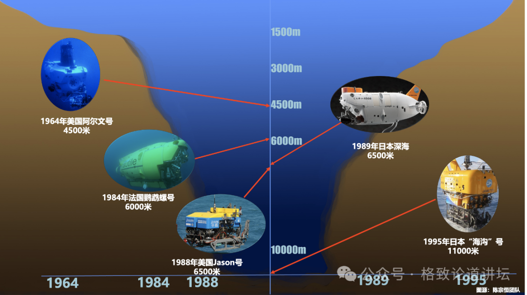 所以人类一直在发展深潜器技术,目前主要有三大类,一个是载人潜水器,一个是无人有缆的遥控潜水器,还有一种是无人自治的潜水器。