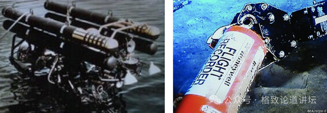 这种遥控潜水器我们叫它ROV(remotely operated vehicle),在深海探测过程中发挥着非常大的作用。世界上第一台遥控潜水器就在深海成功打捞了一个落水的氢弹,引起了世界范围的轰动。后来,如果法国航空、瑞士航空的飞机坠落在深海,也是它们去打捞黑匣子,找到事故的原因。