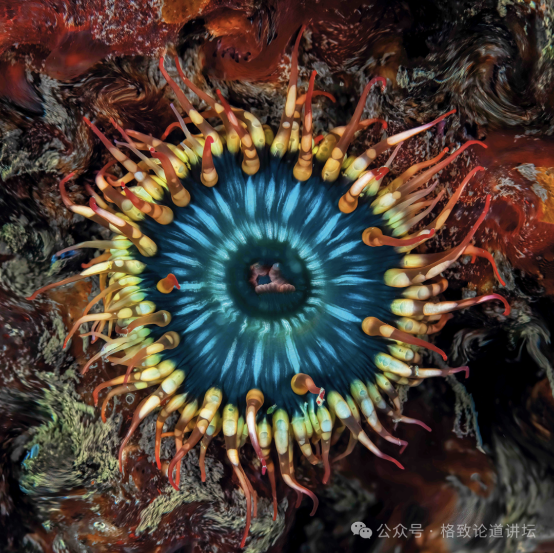 比如这幅是我2021年在深圳大鹏半岛拍摄的一个水下的椰树管虫。它在海底的时候其实很小、很普通,但我拍的时候对技术参数做了一些设置,让它有了印象派的感觉。
