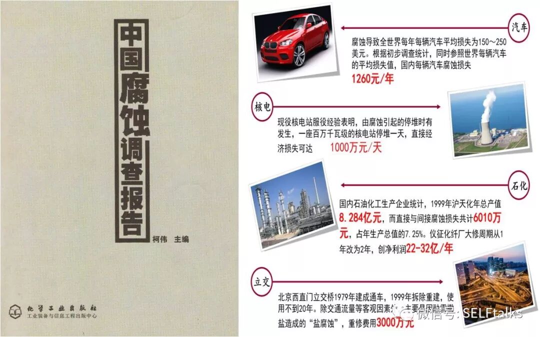 其实大家不了解。除了加油之外,汽车其他所有的保养费用其实都花在了腐蚀上。比如,汽车的发动机会因为高温腐蚀、氧化磨损而失效,排气孔会发生露点腐蚀,汽车的底盘和表面喷漆也都是为了防腐蚀。此外,整个车体的老化也是因为腐蚀。所以,一辆汽车每年花在腐蚀上的费用是1260元。