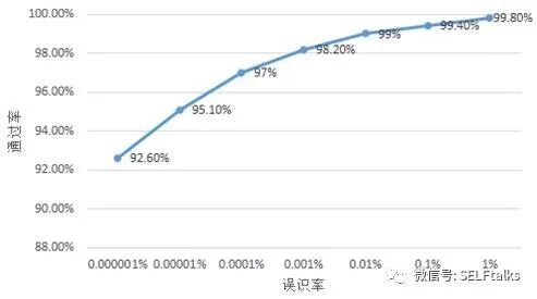 通过这些技术,我们今天可以把人脸识别的误识率做到亿分之一。相当于1亿次尝试冒充别人去验证,只有一次机会的概率通过,这基本上可以覆盖到绝大多数的应用。我们人眼的正确率大概是97%左右,它已经是99.8%了。