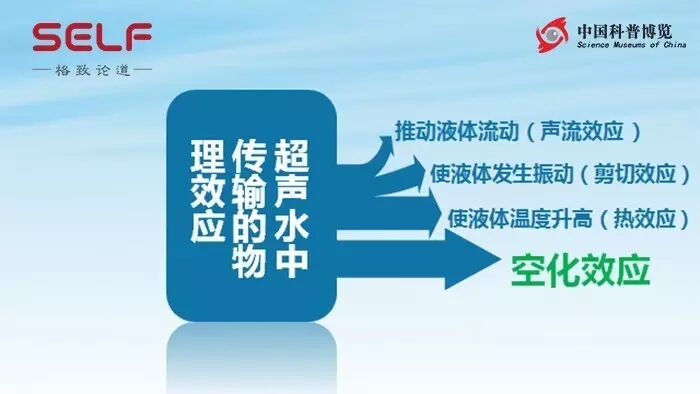 其次超声波还可以使液体发生振动,每秒钟振动几万次甚至更高,这种高速振动和剪切效应也是清洗的一部分但并不是最主要的;另外还有一个就是“热效应”,超声波属于一种机械能,它最终会耗散成低品位的热能,也就是分子无规则运动;最后也是最重要的一个物理效应就是“空化效应”,我今天最想谈的就是空化效应。