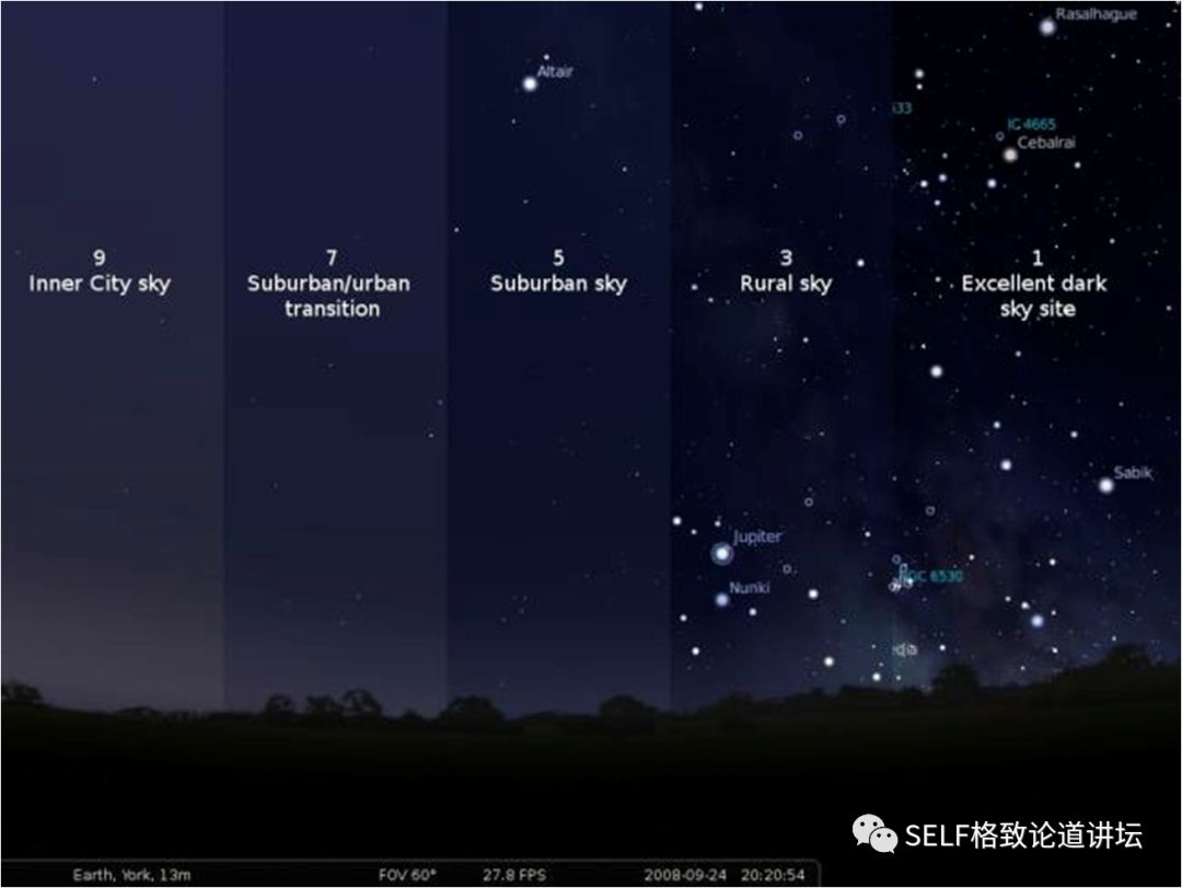 还有不少人对我在视频中提到的夜空光度测量设备感兴趣,这个设备的工作原理并不复杂,它和波特尔所做的夜空划分类似。波特尔是一位天文爱好者,他将夜空从最明亮到最黑暗分为9级。