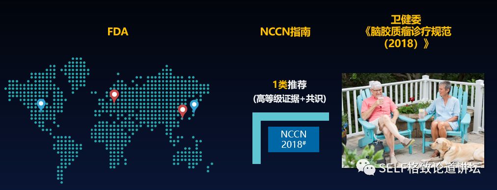 所以在专业领域,肿瘤电场治疗临床试验所获得的证据级别是一类证据。正因为是一类证据,美国FDA、NCCN指南以及中国国家卫健委2018年12月公布的《脑胶质瘤诊疗规范》中,都把肿瘤电场治疗作为新发胶质母细胞瘤的一级治疗证据进行推荐。