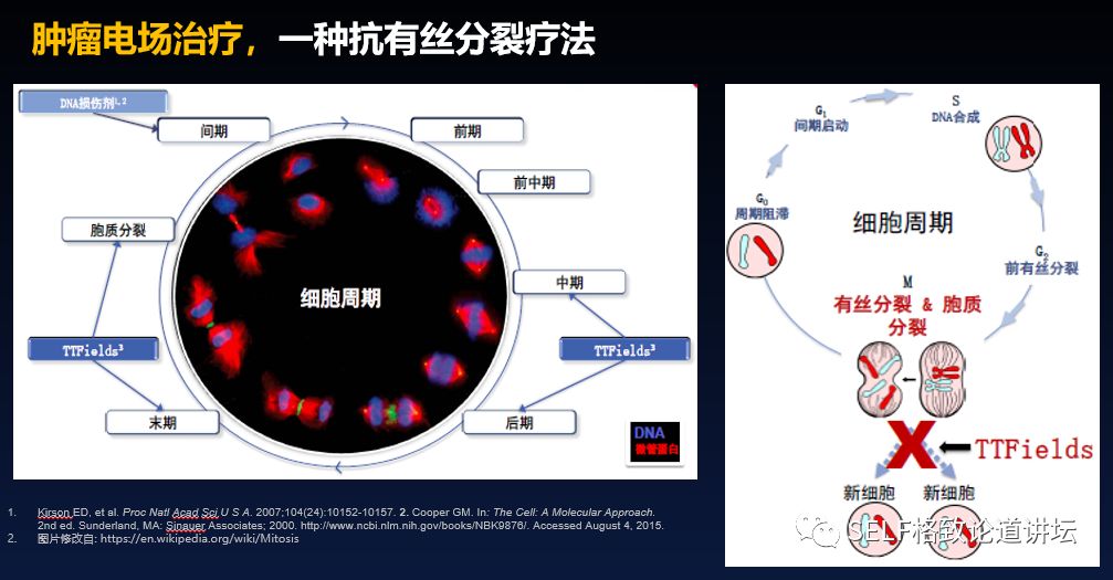 大家会问这种方法会不会抑制正常细胞的有丝分裂?研究已经告诉我们,抑制正常细胞有丝分裂的频率跟电场抑制肿瘤细胞有丝分裂的频率是不一样的。