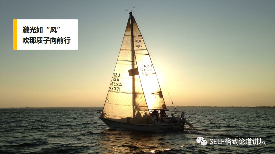 在这里激光就和风一样,质子就和船一样不断加速。只不过因为激光特别强,加速起来的速度比船的速度要快得多,可以达到光速。