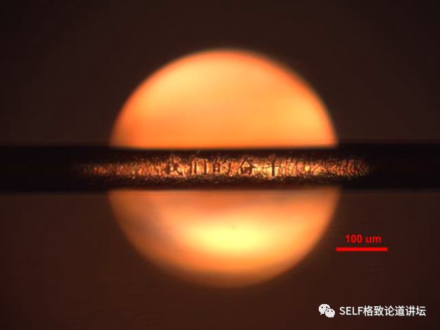 另外,激光的焦斑特别小,可以小到微米量级、纳米量级,1微米等于10-6米。激光可以进行纳米刻蚀,这是科学家在头发丝上刻的“我们的奋斗”五个字。