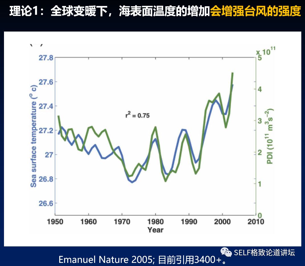 当年为了找到比较确切的证据,科学家们从观测、理论和数值模拟上做了大量工作,最后才得出台风的变化趋势和海温确实有着非常明显的直接的关系。那就是:全球变暖后,海温会升高,台风强度会变强。