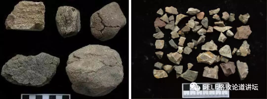 不过我们同时发现了很多被烧过的石头,其中有一些特别细小而破碎的石头,它们并不是工具,为什么会在这里出现呢?